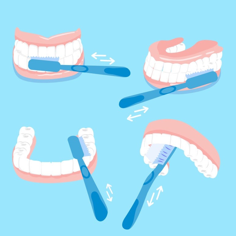 | 3 | 칫솔로 틀니의 표면을 깨끗하게 닦아주는 것에 집중해 주세요. |
